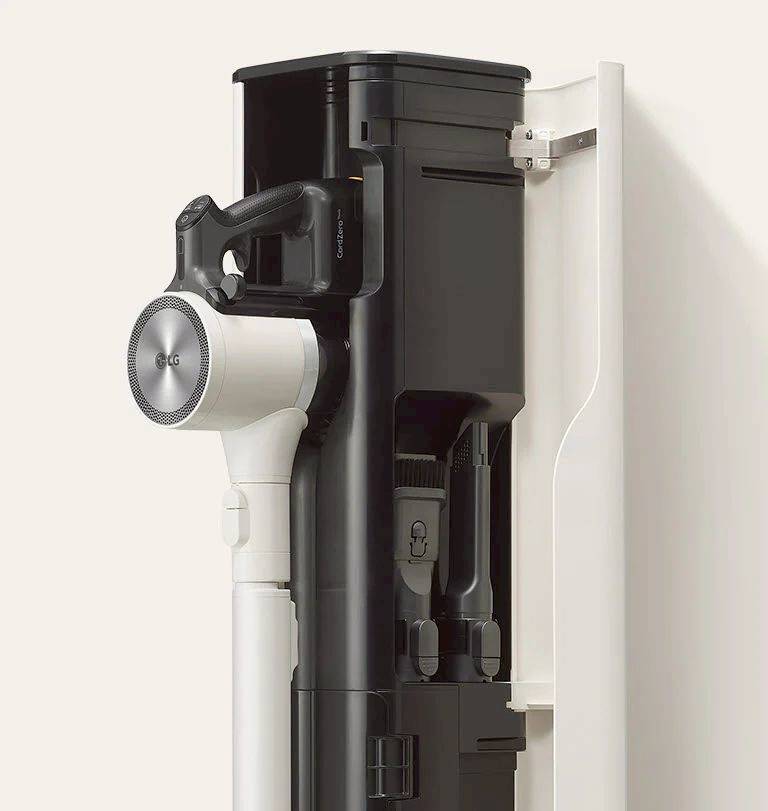 การชาร์จแบตเตอรี่แบบคู่จัดเก็บและชาร์จทั้งเครื่องดูดฝุ่นและ แบตเตอรี่สำรองในแท่นชาร์จ พร้อมกัน