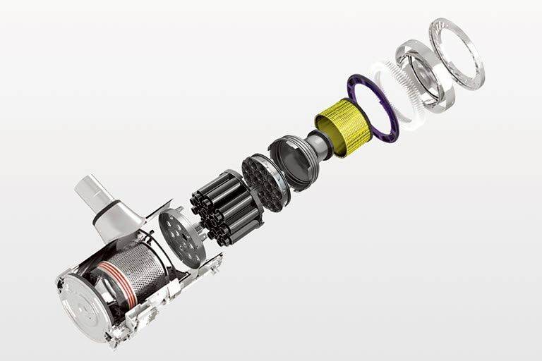 ระบบกรอง 5 ขั้นตอนนี้สามารถกรองฝุ่น และสิ่งสกปรกได้ถึง 99.999% โดยเริ่มจากการทำการแยกสิ่งสกปรกภายใน ถังเก็บฝุ่น แล้วกรองฝุ่นละอองขนาดเล็ก